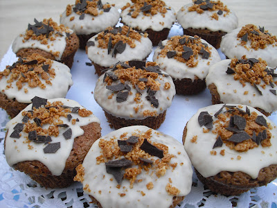 Prima di servire inseriamo le mousse in 2 sac à poche e decoriamo a nostro piacere.Vi consiglio di fare questo operazione poco prima ,per evitare di mettere i muffin in frigo,che si compatterebbero troppo!